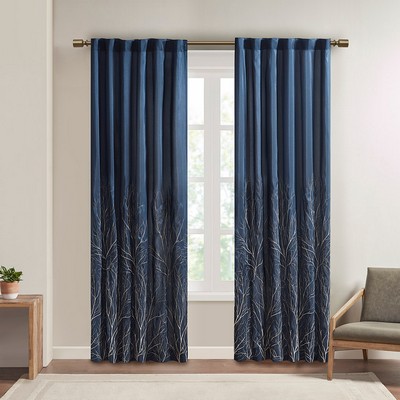 | Madison Park 50x84" 1 Window Panel: 50x84" 100% Polyester, Rod Pocket, back tabs, lined Transitional Modern Style Includes 1 Piece(s) Machine wash cold, gentle cycle, and separately. Do not bleach. Tumble dry low, remove promptly. Do not iron. If there is no free movement in the washer or dryer, use large capacity commercial washer/dryer. The Madison Park Andora Window Panel Combines Style And Nature In The Best Way. A Striking Tree Branch Design Is Embroidered On Beautiful Faux Silk, Creating Alluring Contrast And Dimension. The Panel Features Added Lining For More Privacy And Better Drapability, While The Luxurious Sheen Provides A Touch Of Sophistication To Your Decor. Hang Using The Rod Pocket Top For A More Casual Style Or By The Back Tabs For A Crisp, Tailored Look. Fits Up To A 1.25” Diameter Rod. Due To The Fabrication And All Over Embroidery Design, Some Texture And Crinkle Maybe Left After Steaming (Steam Only, Do Not Iron). |