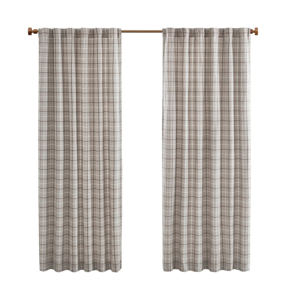 Anaheim Brown Plaid Rod Pocket and Back Tab Curtain Panel with Fleece Lining