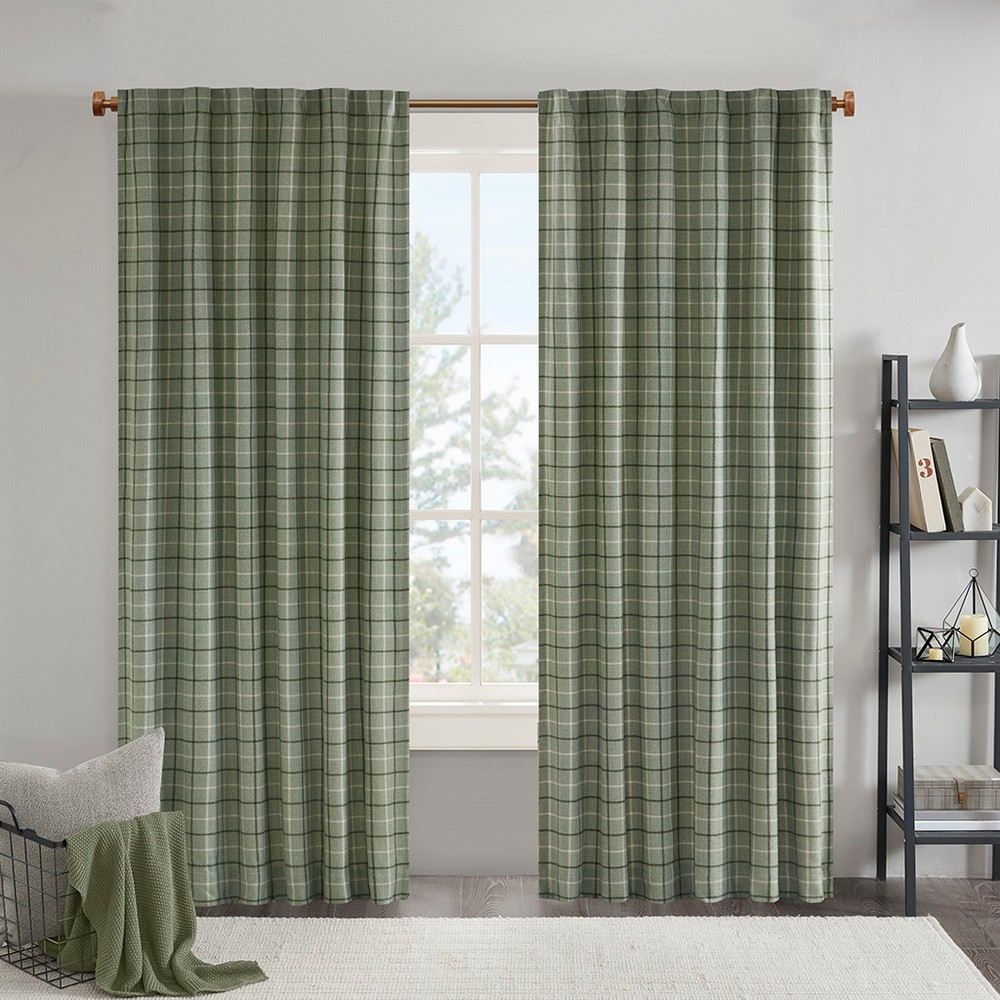Anaheim Green Plaid Rod Pocket and Back Tab Curtain Panel with Fleece Lining