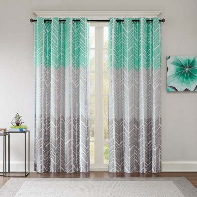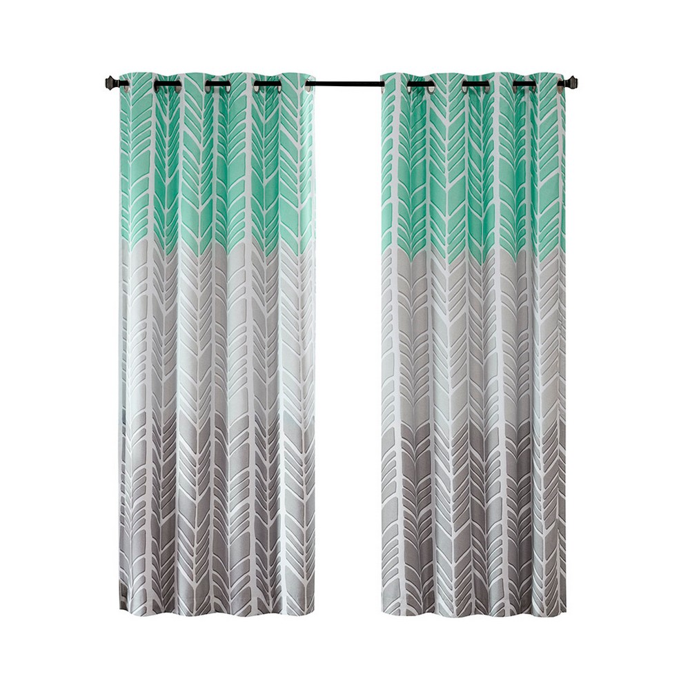 | Intelligent Design 50x84" 1 Window Panel: 50x84" 100% Polyester; 3 pass foam back lining Casual Style Includes 1 Piece(s) MACHINE WASH COLD, GENTLE CYCLE, AND SEPARATELY. DO NOT BLEACH. TUMBLE DRY LOW, REMOVE PROMPTLY, DO NOT IRON. IF THERE IS NO FREE MOVEMENT IN THE WASHER OR DRYER, USE LARGE CAPACITY COMMERCIAL WASHER/DRYER Create a color blocked look in your room with our Intelligent Design Adel Total Blackout Window panel. This geometric chevron design uses light grey, taupe, and aqua for a unique combination of color and pattern. Finished with a heavy 3 pass foamback liner, this panel is 100% total blackout for a maximum barrier against all exterior light and noise intrusion for the utmost privacy, while the thermal technology provides energy efficiency. Grommet top makes this panel easy to hang, open, and close through the day; fits up to a standard 1.25" diameter rod. Machine washable for easy care; complete the collection with coordinating bedding and shower curtain sold separately. |