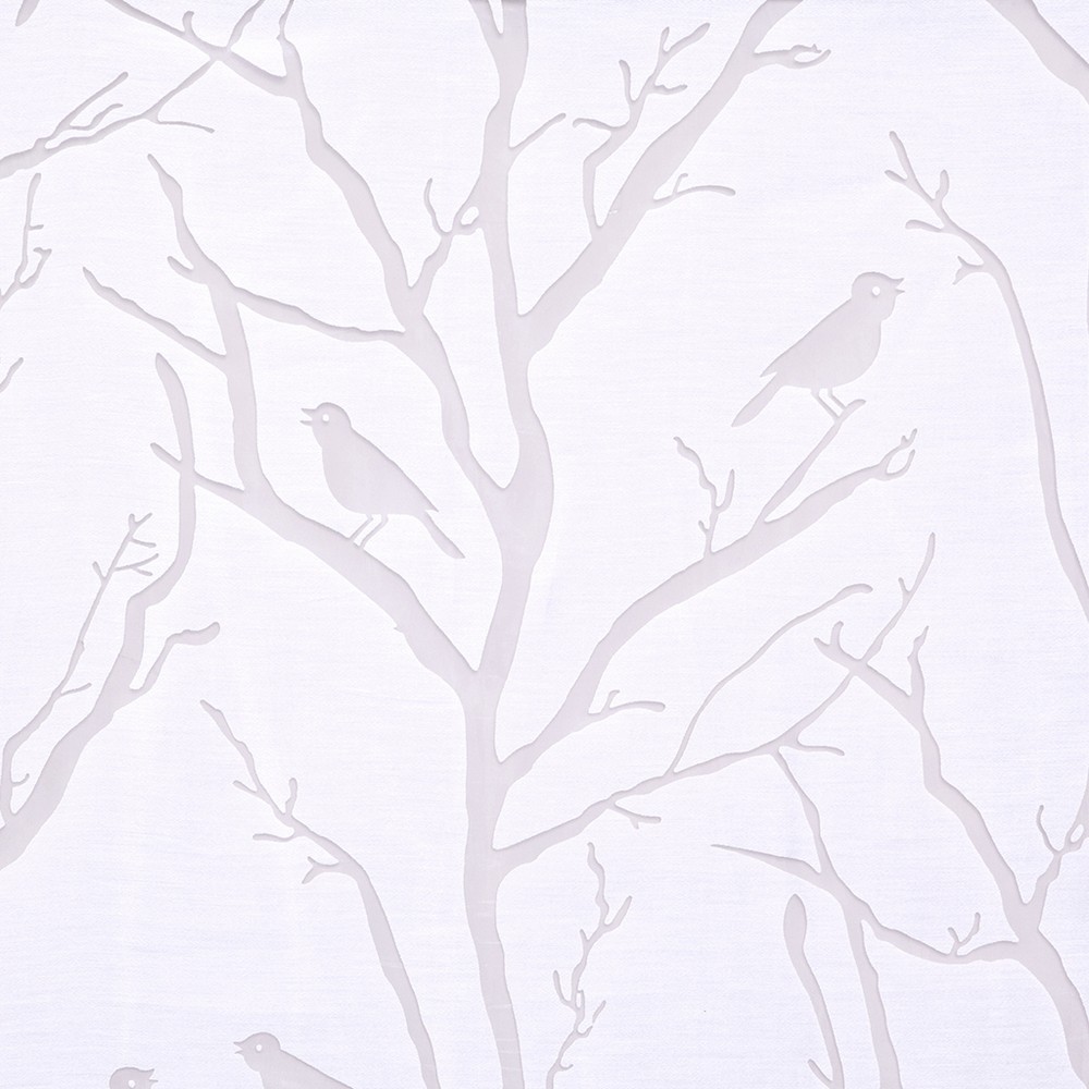 Averil White Grommet Top Sheer Bird on Branches Burnout Window Curtain