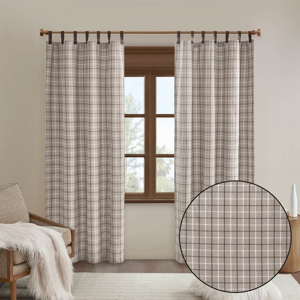 Anaheim Brown Plaid Faux Leather Tab Top Curtain Panel with Fleece Lining