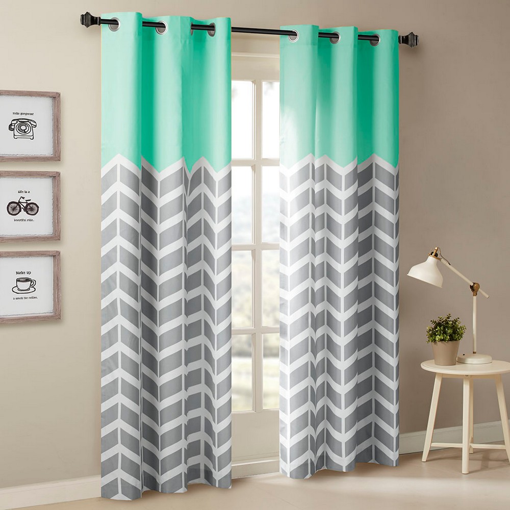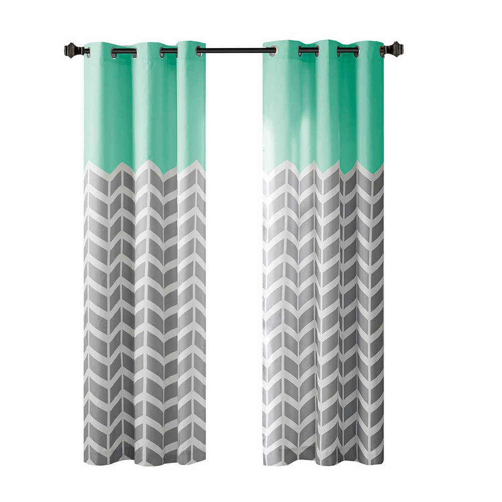 Alex Aqua Chevron Printed Room Darkening Grommet Top Panel Pair