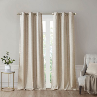 | Sunsmart 42x84" 2 Window Panels: 42"W x 84"L (2) 100% Polyester Modern/Contemporary Style Includes 2 Piece(s) Machine Washable Elevate your decor with the modern style and function of our SunSmart Como Tonal Printed Faux Silk Room Darkening Panel Pair. This curtain pair flaunts a tonal hue on a faux silk textured fabric that creates a beautiful and rich modern look. Registered with OEKO-TEX certification, these curtains do not contain any harmful substances or chemicals ensuring quality comfort and wellness. Each panel features a foamback reverse with thermal technology, providing room darkening capabilities and helping to produce maximum energy savings by keeping your room the perfect temperature throughout the year. Easily hang, open, and close panels throughout the day with the silver grommet top finish; this room darkening window panel pair is perfect for use in bedrooms, media rooms, or any private space providing a darkened ambiance lighting level when curtains are fully closed. |