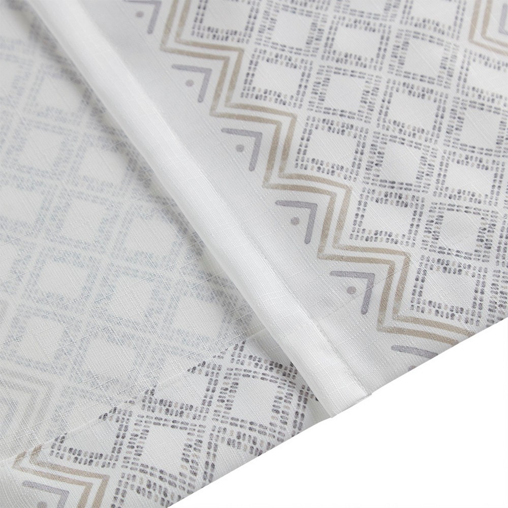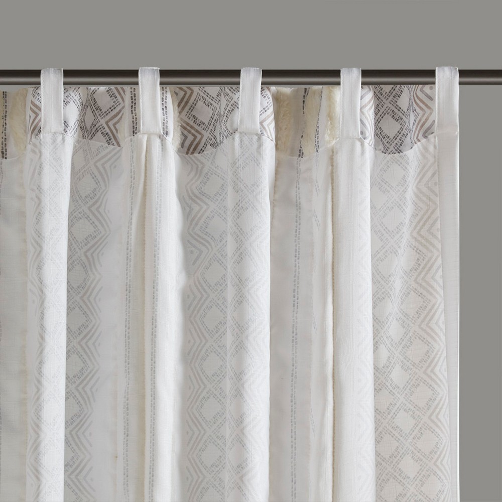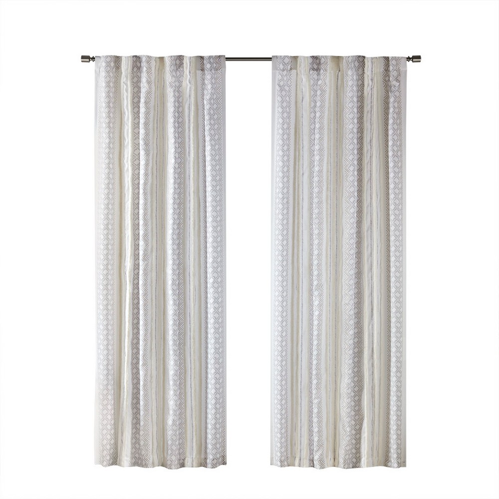 Ebby White/Taupe 2pk Poly Printed Curtain Panel with Tufted Stripe