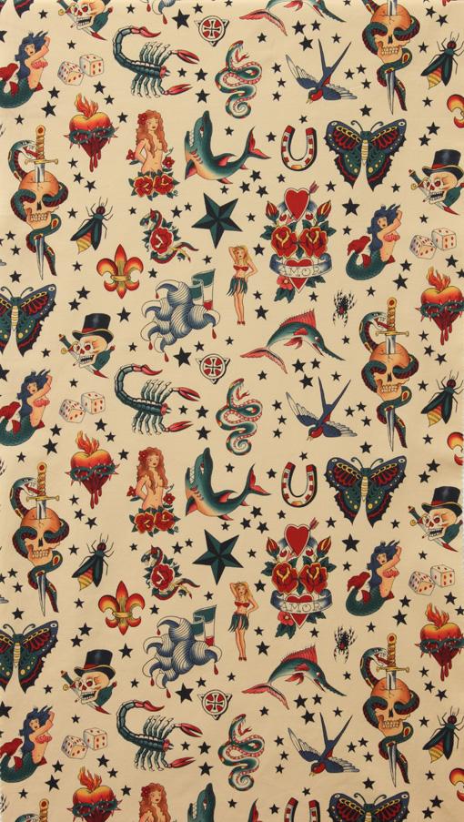 | Hula girl is 2 3/4" tall. This fabric features your favorite tattoo inspiration from Alexander Henry. |