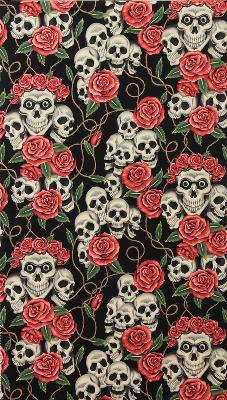 | Roses and skulls in tattoo style by Alexander Henry for crafts and other fabric