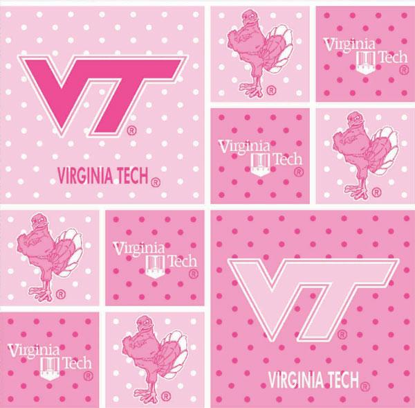 Foust Textiles Inc Virginia Tech Hokies Pink Block Cotton Print