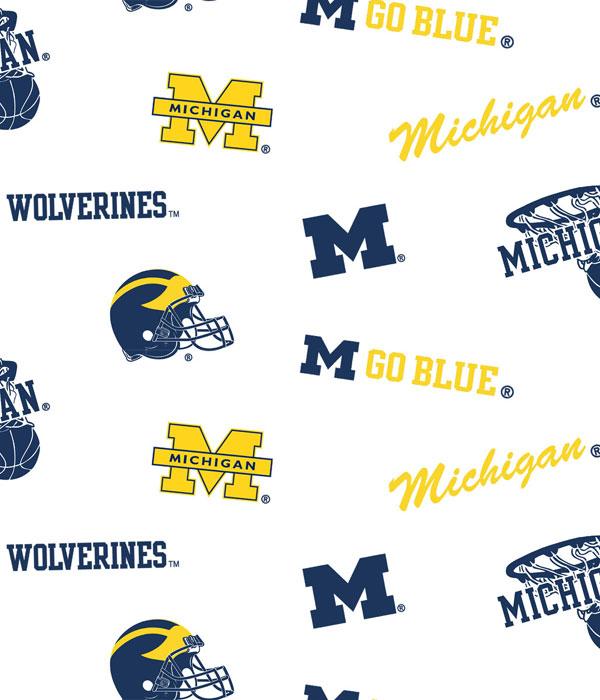 Foust Textiles Inc Michigan Wolverines Cotton Print - White
