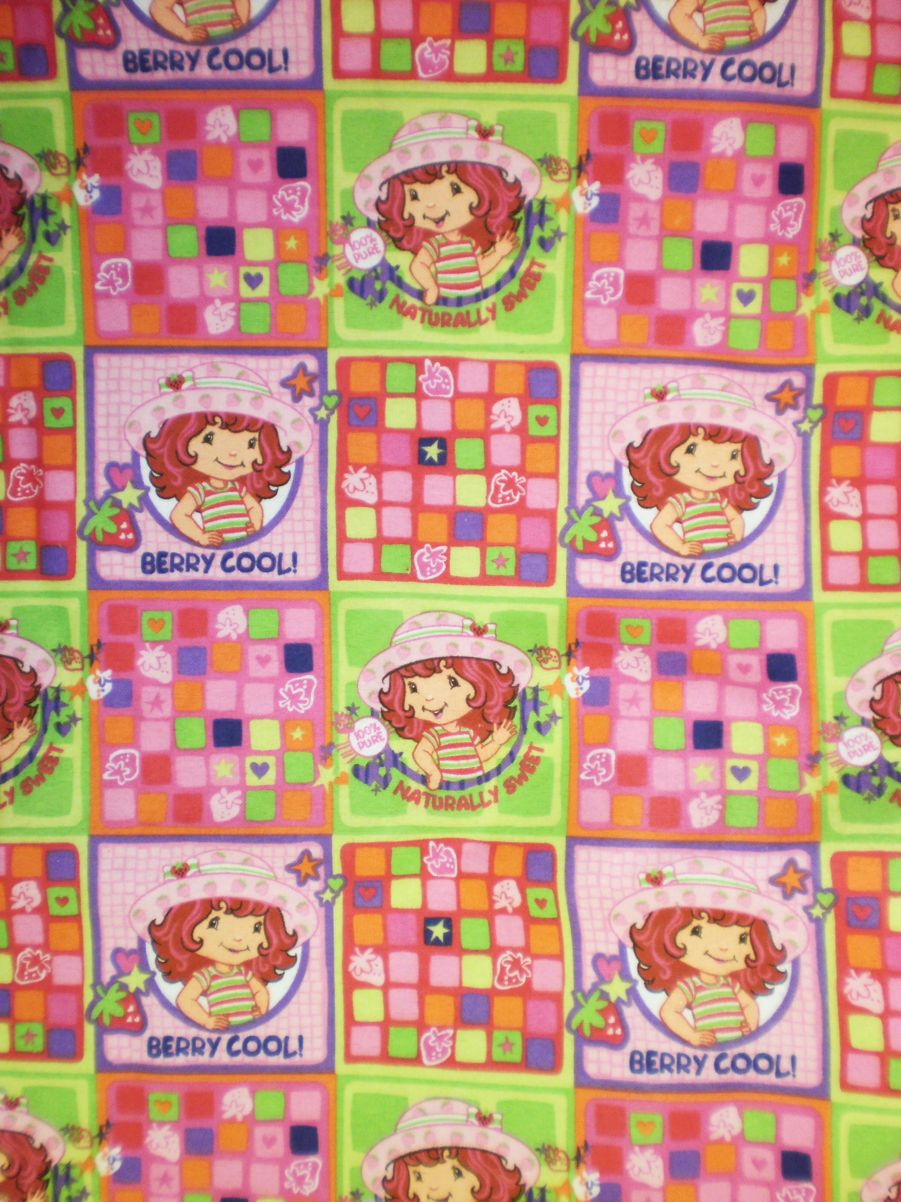 | This flannel is Berry Cool featuring a patchwork design and the beloved Strawberry Shortcake. |