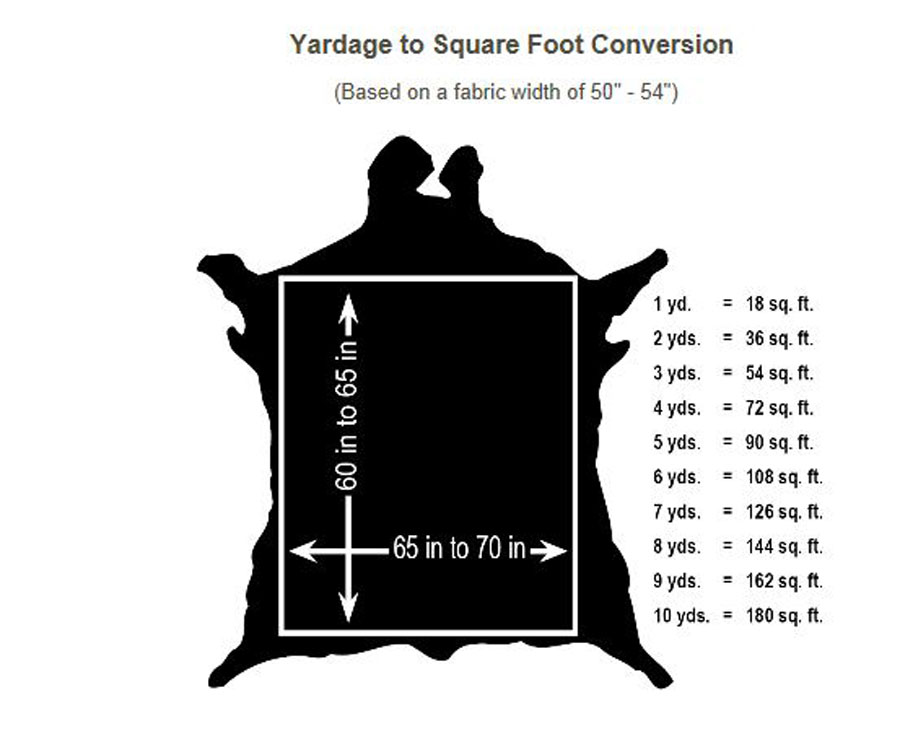 One 54-inch fabric yard is equal to 18 square feet of leather. This equation takes into account the waste factor.
