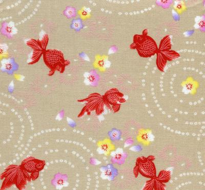 | Tiny goldfishes swimming in a pond with tiny flowers and swirls. Takumi Collection |