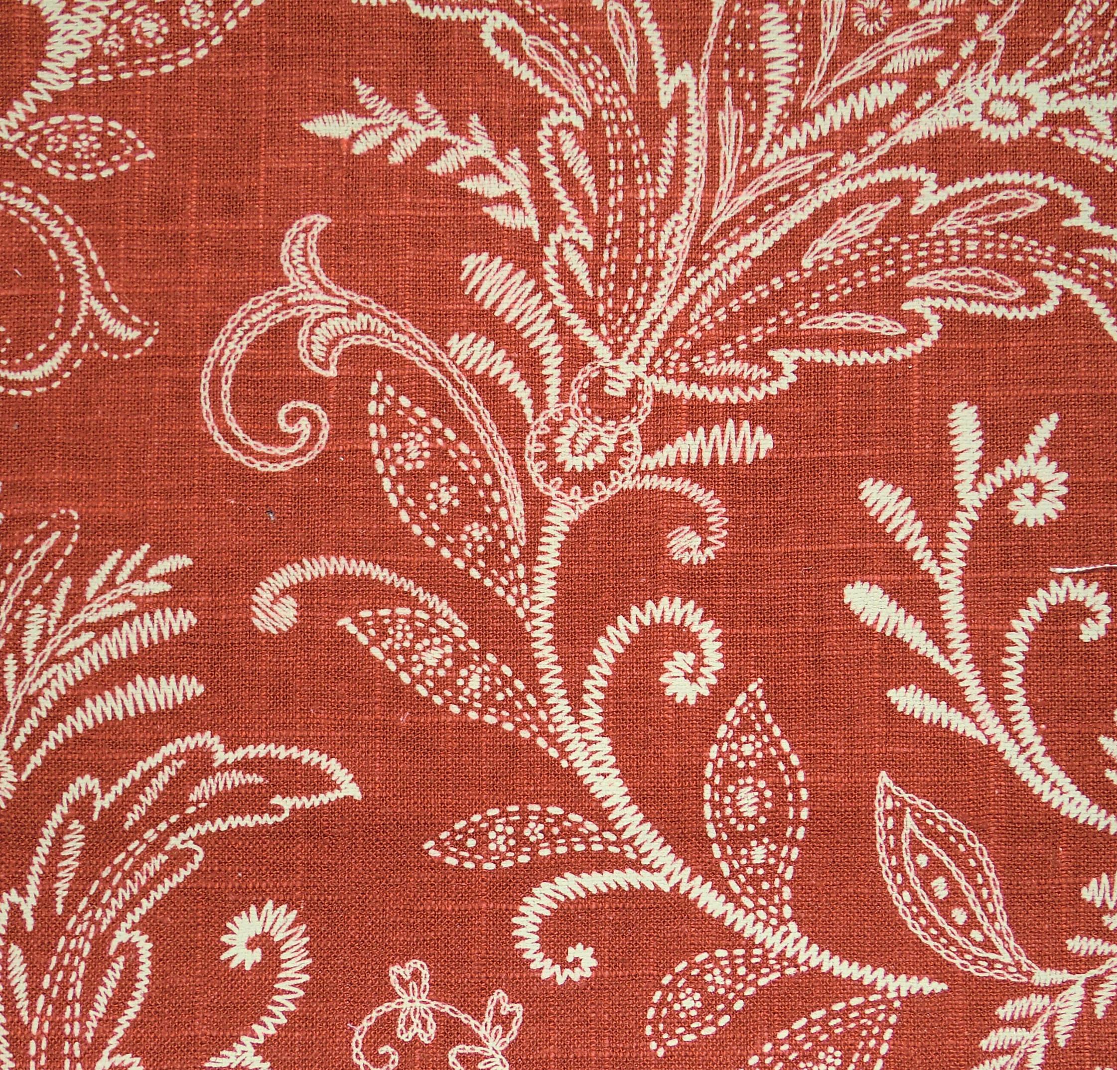 | Soil and stain repellent finish. RM Coco International Botanical,Paisley Linen/Blend, Print |