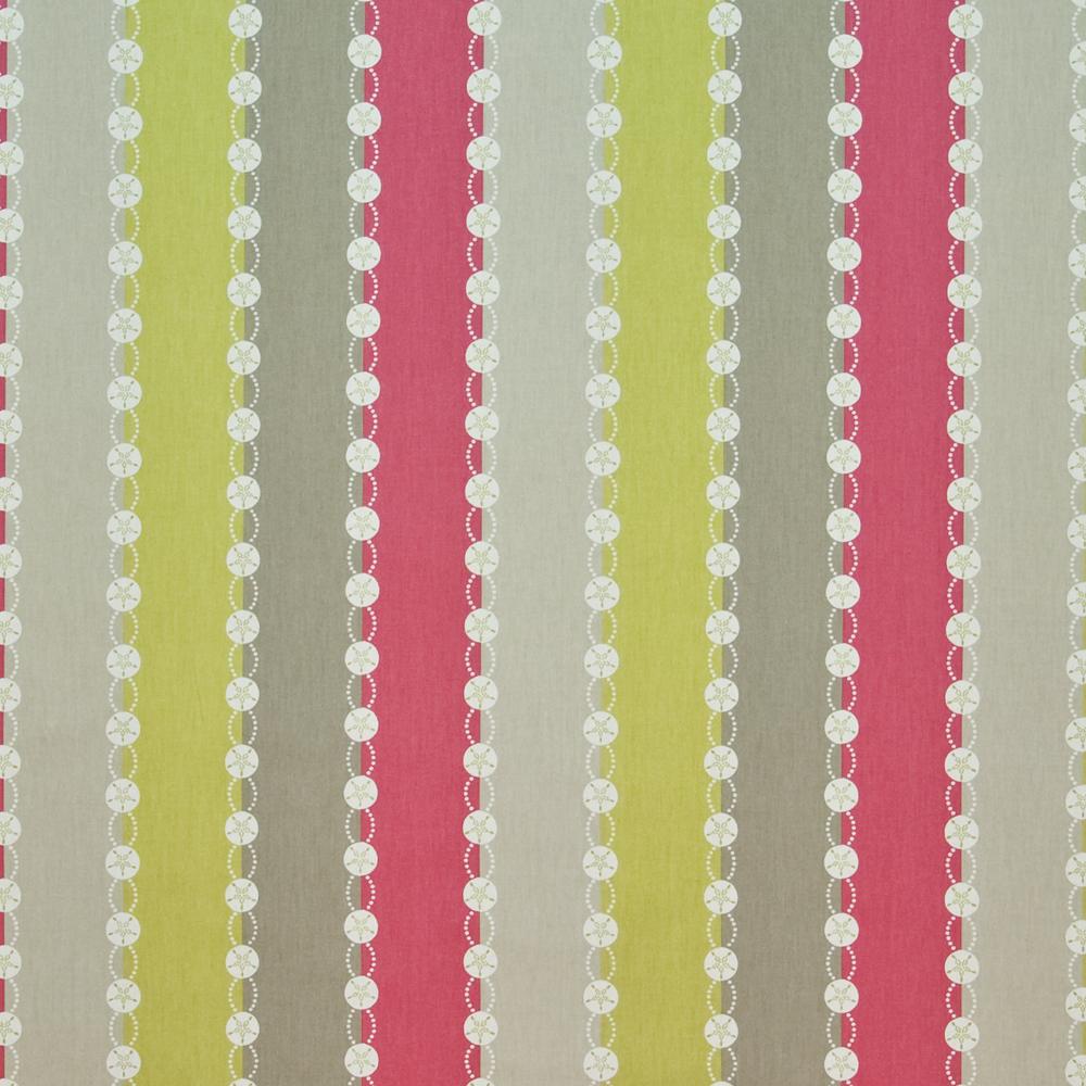 Soil & Stain Repellent 100% Cotton Fabric Featuring a Stripe and Sand Dollar Combination. |