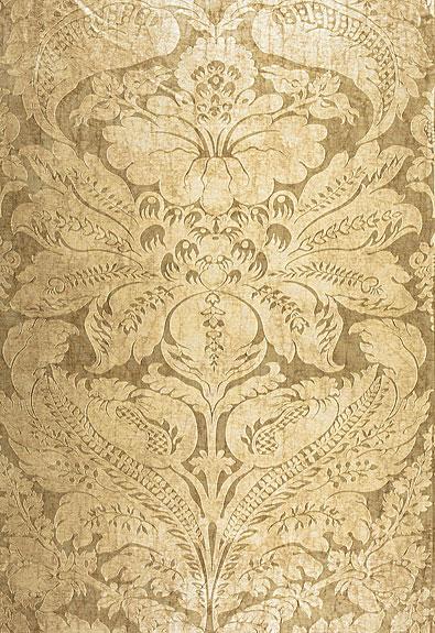 This classic Georgian damask has the appearance of a beautiful antique textile woven of metallic threads. Its fine linen blend quality is enhanced through finishing techniques: the fabric uses over dyeing, distressing and metallic transfer processes to create an unusual and one-of-a kind surface effect. Suitable for curtains and upholstery, it adds a note of glamour and updated tradition to a wide range of living spaces. |