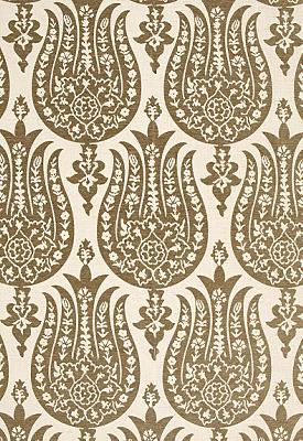 The classic and symmetrical motif of a tulip flower is derived from Ottoman textiles and ornamentation, and reinterpreted here in a sumptuous woven fabric with a velvety appearance. Soft cotton chenille yarns create the overscaled design elements, and the fabric is washed and tumbled to add to the raised effect and to enhance its supple hand. Its high durability, which includes light backing, makes it not only glamorous but practical for a wide variety of seating options. |