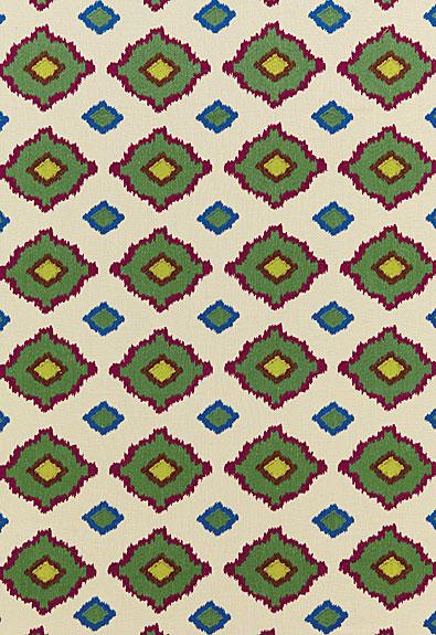 Derived from an antique ikat textile, Sikar Embroidery features an allover design of diamonds in exotic colorations. The fabrics embroidery is multihued, layering fine stitches in varying lengths to create the appearance of the original warp printed fabric. It is a perfect complement of pattern and color for the bolder statement fabrics in the collection. Its tightly woven linen ground makes it versatile for use as upholstery, pillows and draperies. |