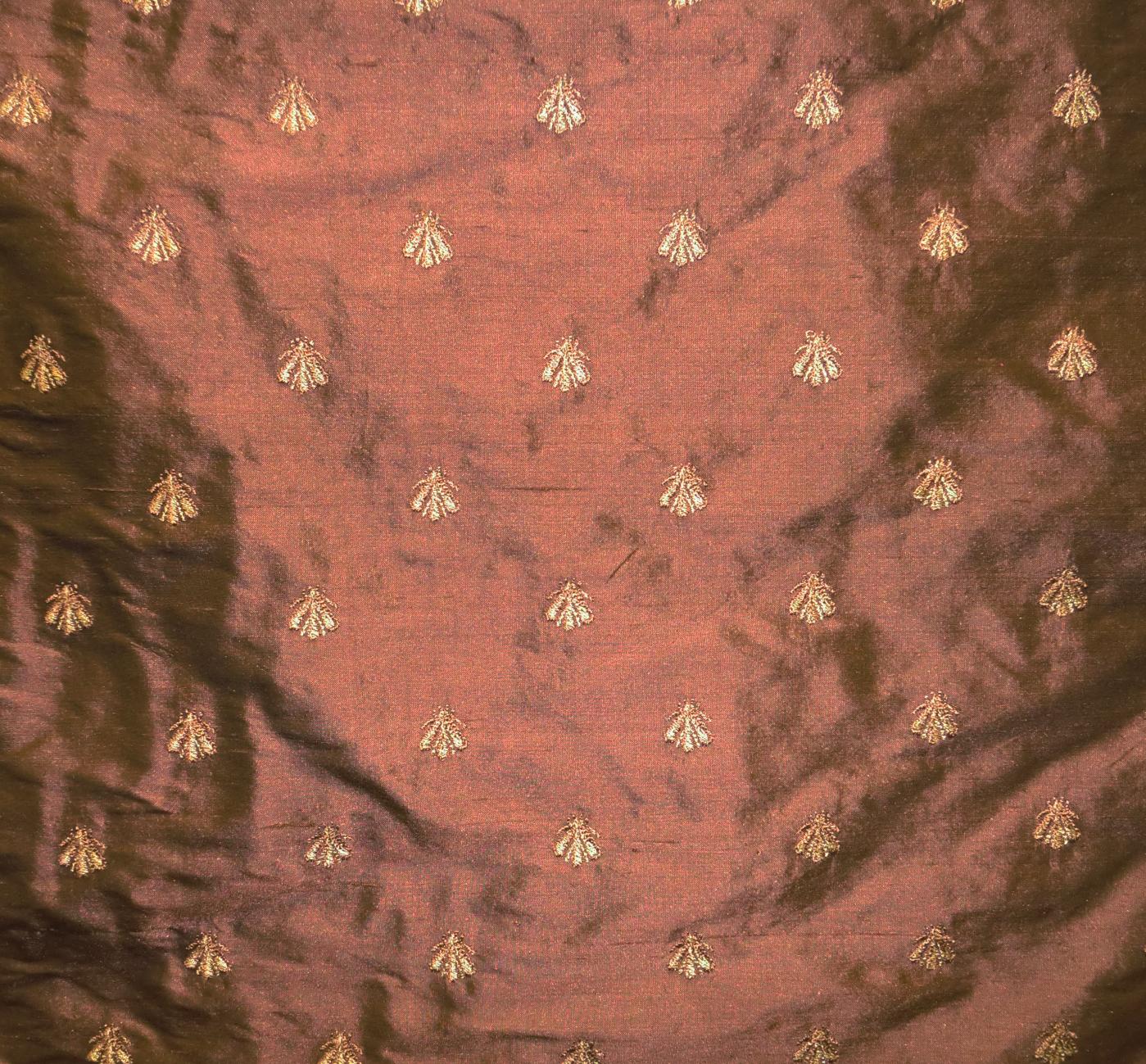 Luxurious Copper Silk Fabric with an Embroidered Bee Design |