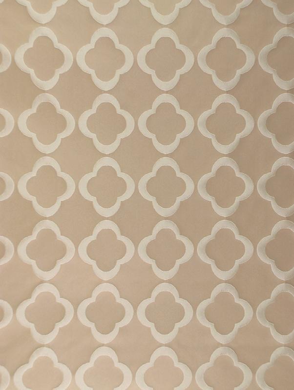 | Wesco Fabrics Lovely faux silk drapery fabric with a quatrefoil design. RM Coco Color Concerto Earth Contemporary |