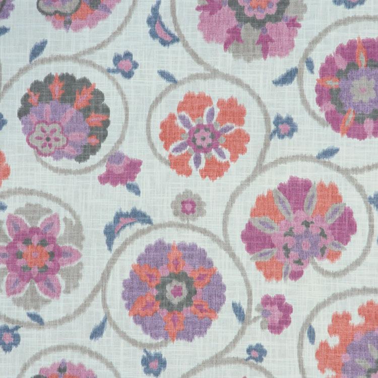 | Vibrant colors in this scrolling floral pattern. Printed and finished in the USA. Soil and stain repellent finish. Suitable for Medium Upholstery Use COCO Classic RM Coco The Print Shop Lattice/Scrollwork,Suzani Print |