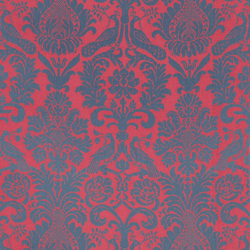 Schumacher Fabric Anna Damask Rouge Prussian Blue