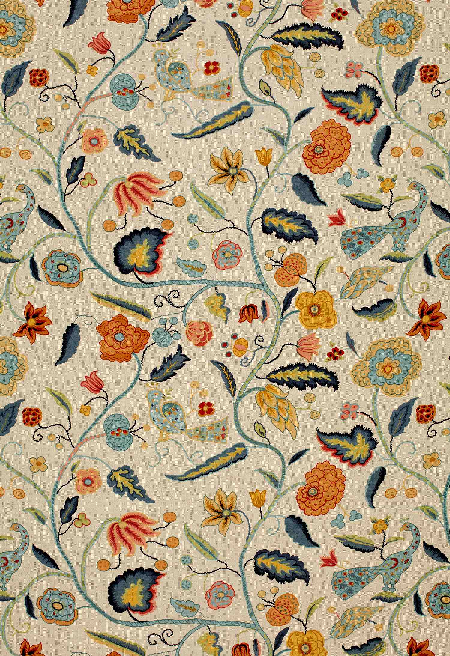 Schumacher Fabric APSLEY VINE APRICOT & TEAL