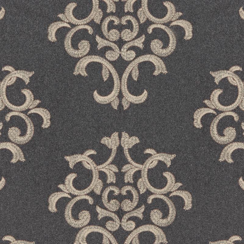 Schumacher Fabric BYRON EMBROIDERED WOOL CHARCOAL