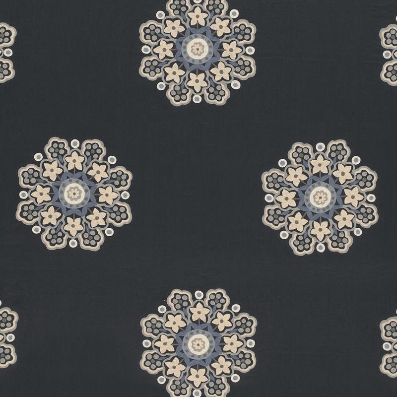 Schumacher Fabric CHENNAI LINEN EMBROIDERY MIDNIGHT