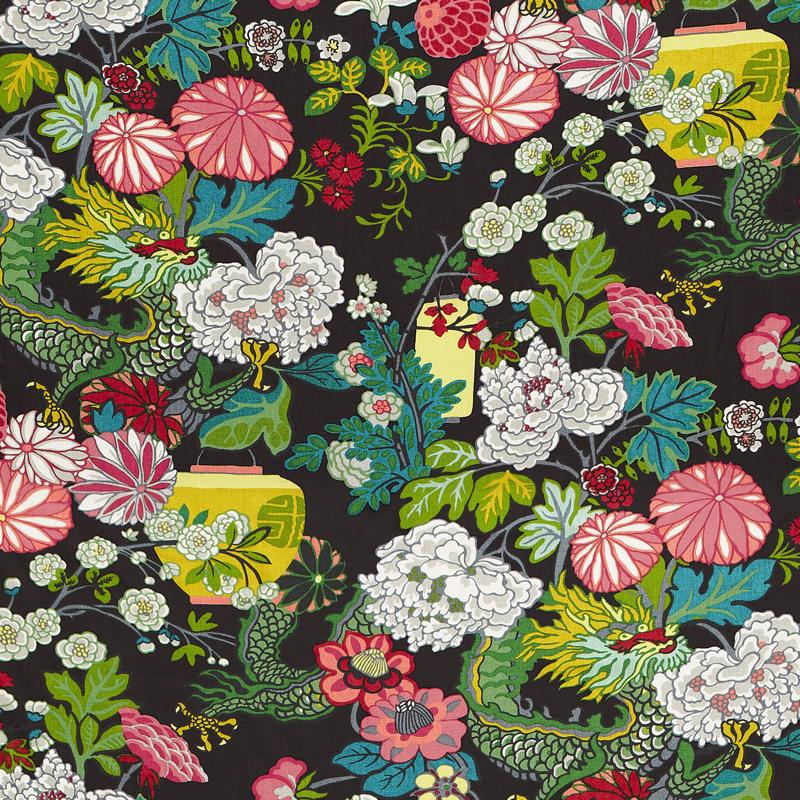 Schumacher Fabric Chiang Mai Dragon Ebony