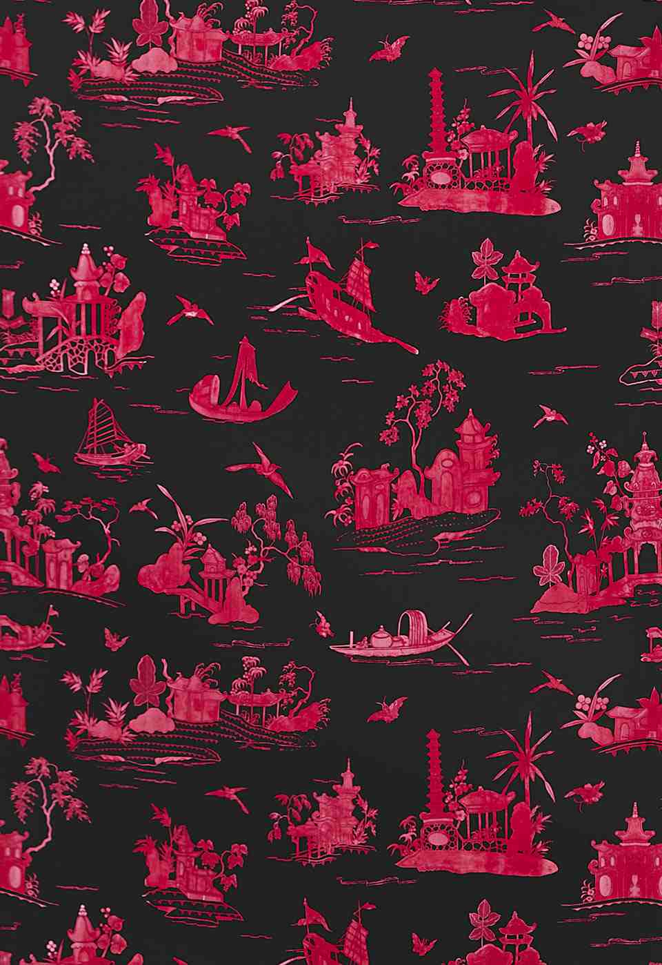 Schumacher Fabric COROMANDEL ROUGE/NOIR