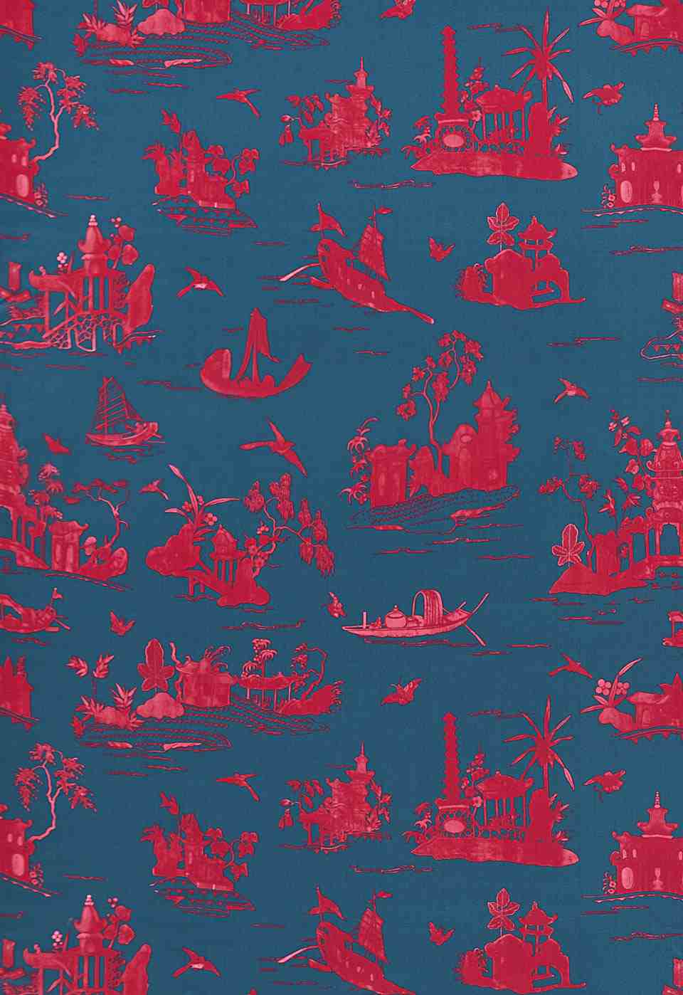 Schumacher Fabric COROMANDEL PRUSSIAN BLUE/ROUGE