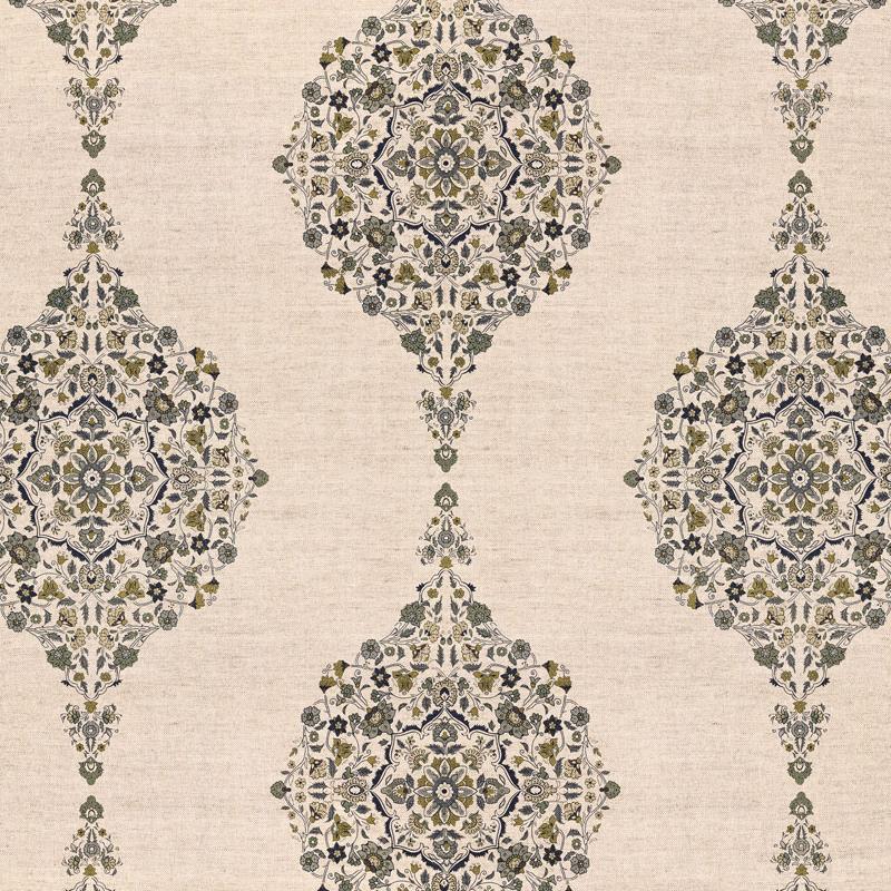 Schumacher Fabric MEHNDI LINEN PRINT SMOKE