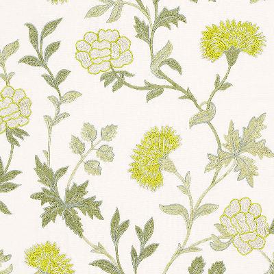 Schumacher Fabric  Sheridan Linen Embroidery Chartreuse