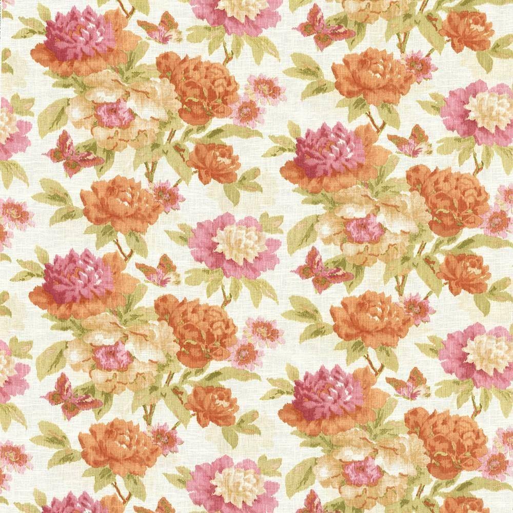 | Floral; Leaf/Foliage/Vine; Animal/Insects Prints Soil & Stain Repellent Finish Brown Gold Orange Pink White |