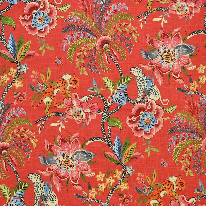 | This fabric is linen rich. The variations in shade, texture and color are qualities unique to authentic linen. Both the random shading and textural variations highlight the natural beauty and aesthetics of the linen fiber. NOVELTY Colors: RED Floral Linen Modern Floral Designs Jungle Safari |