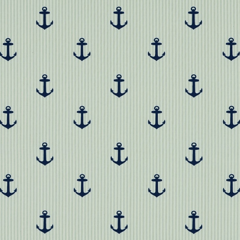 | Indoor/Outdoor fabric featuring anchors on a small stripe background. |