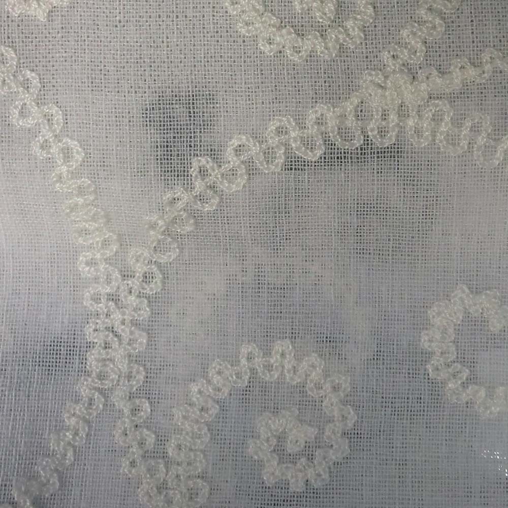 | Modern linen look embroidered fabric with an open see through weave is great for curtains. |