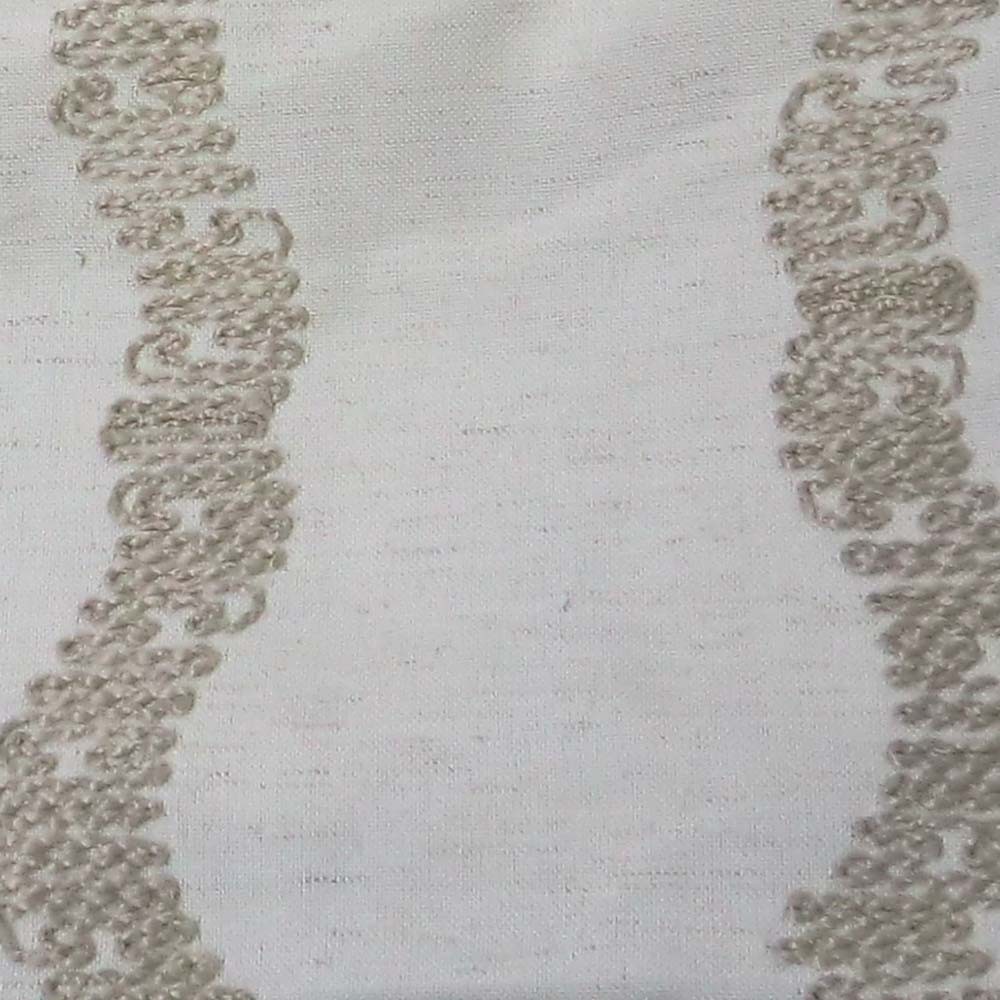 | Linen look fabric with rich roped embroidery. Lovely embroidered wavy stripes. Suitable for curtains and upholstery. |
