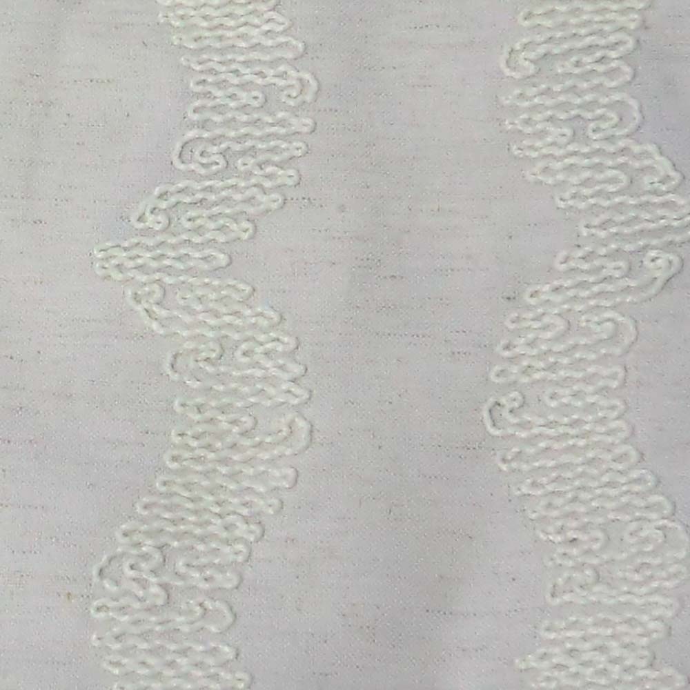 | Linen look fabric with rich roped embroidery. Lovely embroidered wavy stripes. Suitable for curtains and upholstery. |