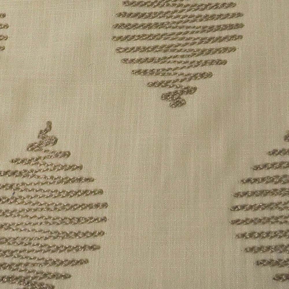 | Linen look fabric with rich roped embroidery. Suitable for curtains and upholstery. |