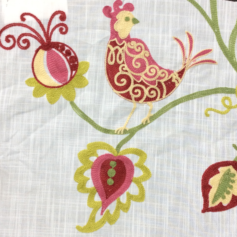 | Linen look fabric with rich roped embroidery. Lovely embroidered birds and flowers. Suitable for curtains and upholstery. Crewel And Embroidered Fabric Floral Embroidery Fabrics |