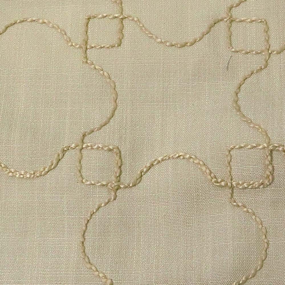 Modern linen look embroidered quatrefoil fabric is great for curtains and upholstery.