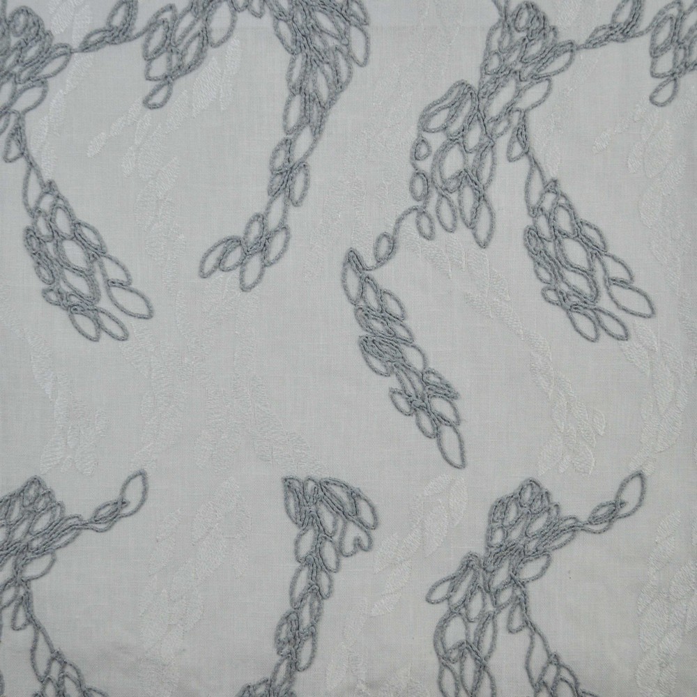 Modern linen look embroidered fabric is great for curtains and upholstery.