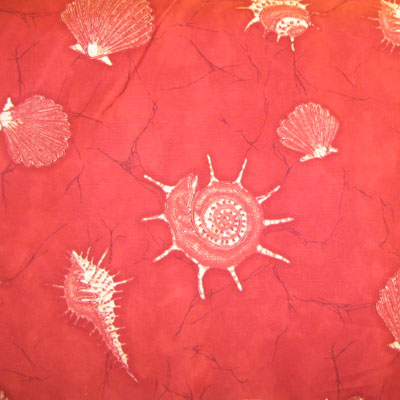| Richloom Fabric. Beautiful sea shells on a deep red background. Sea Shells Beach Fabrics |