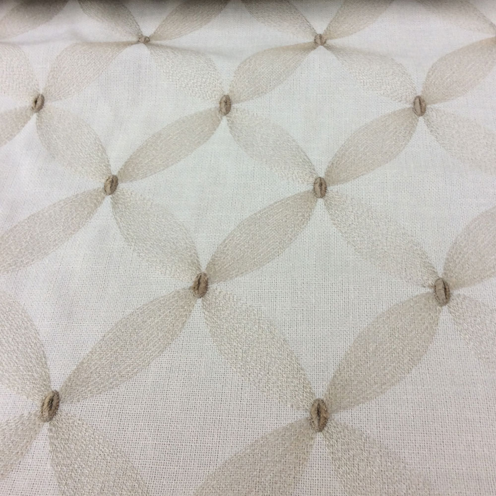 Lovely ogee embroidered fabric perfect for bedding and draperies.