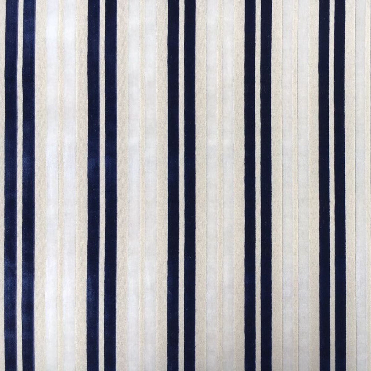 | Sumptous velvet striped fabric features alternating colors of paired stripes. Same color stripes measure 1 inch with a slightly larger space between the next pair of stripes. |
