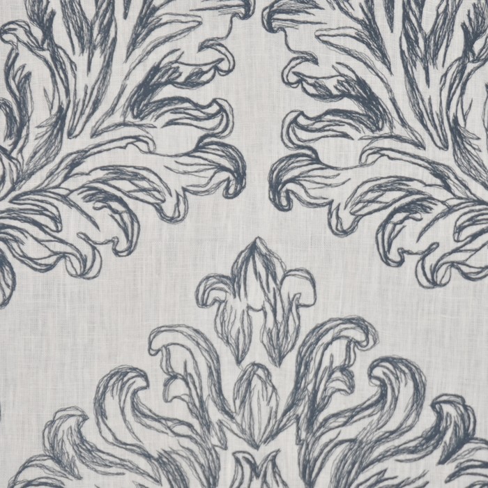 | Black Printed Linen Fabric RM Coco Feng Shui Damask,Embroidery Embroidery, Linen/Blend |