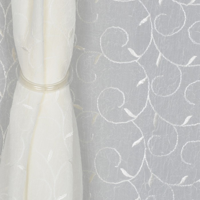 | Beige Circles and Swirls Sheer Fabric RM Coco Botanical Beauty Embroidery,Lattice/Scrollwork,Texture Sheer |