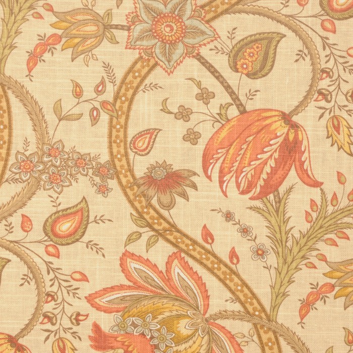 | Beige Jacobean Floral Fabric RM Coco Caramel Creme Floral Large Linen/Blend, Print |