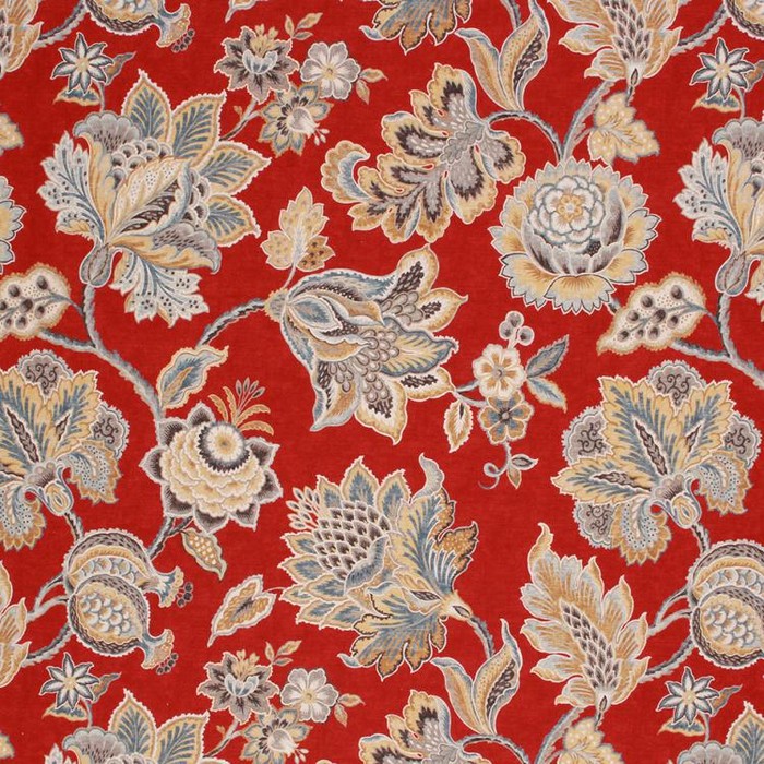 | Red Jacobean Floral Fabric RM Coco Inspired Living Vol 3 Floral,Jacobean,Traditional Print |